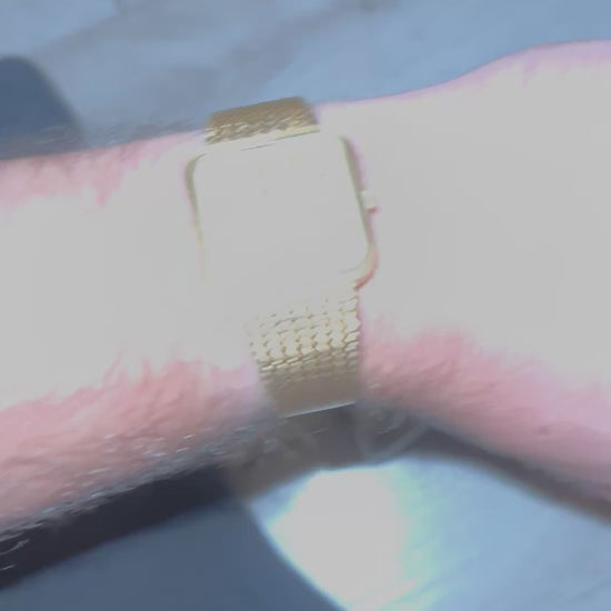 Découvrez cette superbe Universal Genève Venise, une pièce emblématique du design horloger des années 1970-1980. Avec son boîtier carré plaqué or et son bracelet milanais assorti, cette montre incarne le raffinement et la sobriété caractéristiques de la maison Universal Genève.